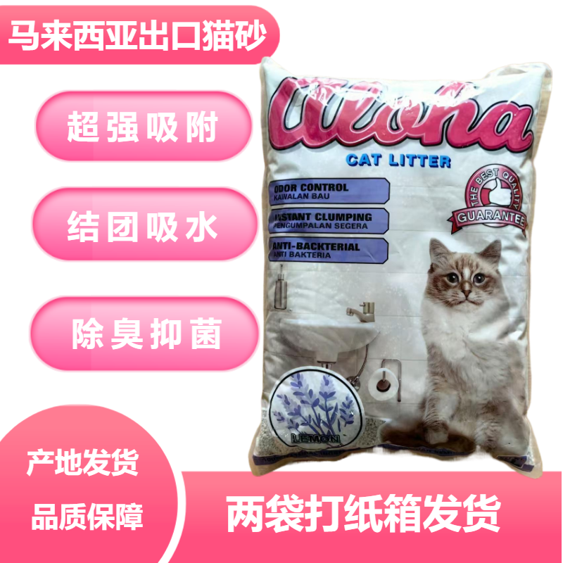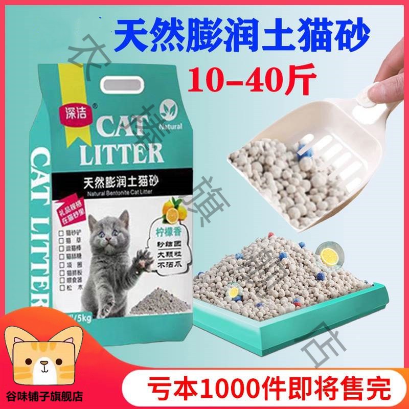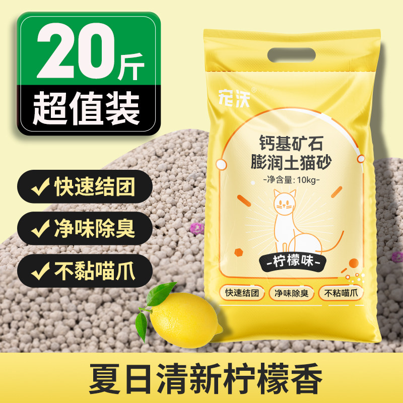 猫砂膨润20斤土除臭无尘结团10斤室内宠物柠檬香味猫砂颗粒膨润土