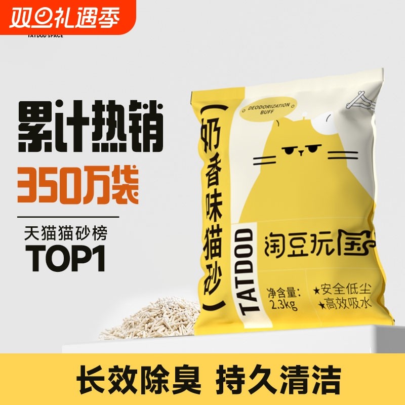 淘豆玩国混合豆腐猫砂除臭近无尘膨润矿土猫沙可冲厕所奶香不粘底