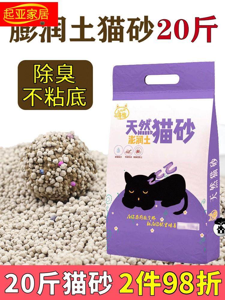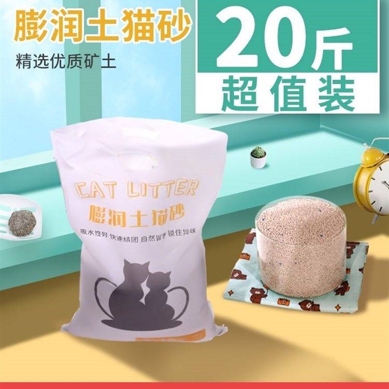 润膨土猫砂除臭无尘20公斤40斤猫沙吸水结团猫咪用品10kg大袋包邮