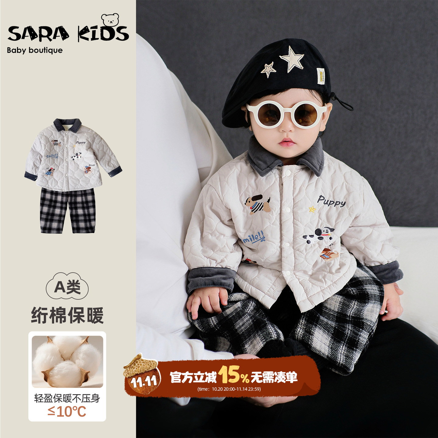 婴儿套装秋冬夹棉保暖衣服宝宝纯棉分体家居服儿童棉衣裤加厚冬装