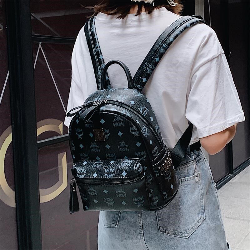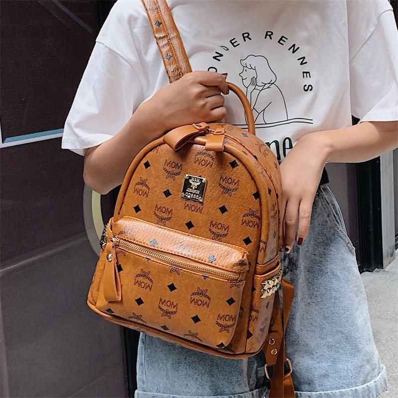 时尚铆钉双肩包女2021新款韩版百搭印花小背包女士休闲潮流旅行包