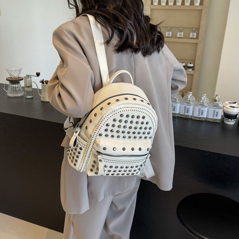 韩版铆钉百搭软皮质感背包女士双肩包20G24新款学生书包ins超火包