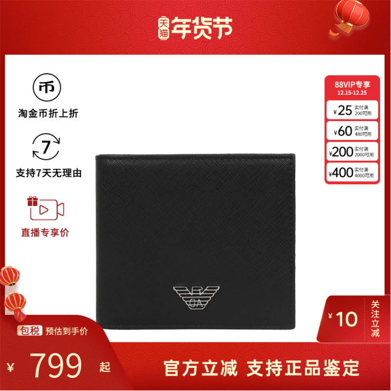 香港直发Emporio Armani阿玛尼男士钱包卡包黑色可折叠经典质感