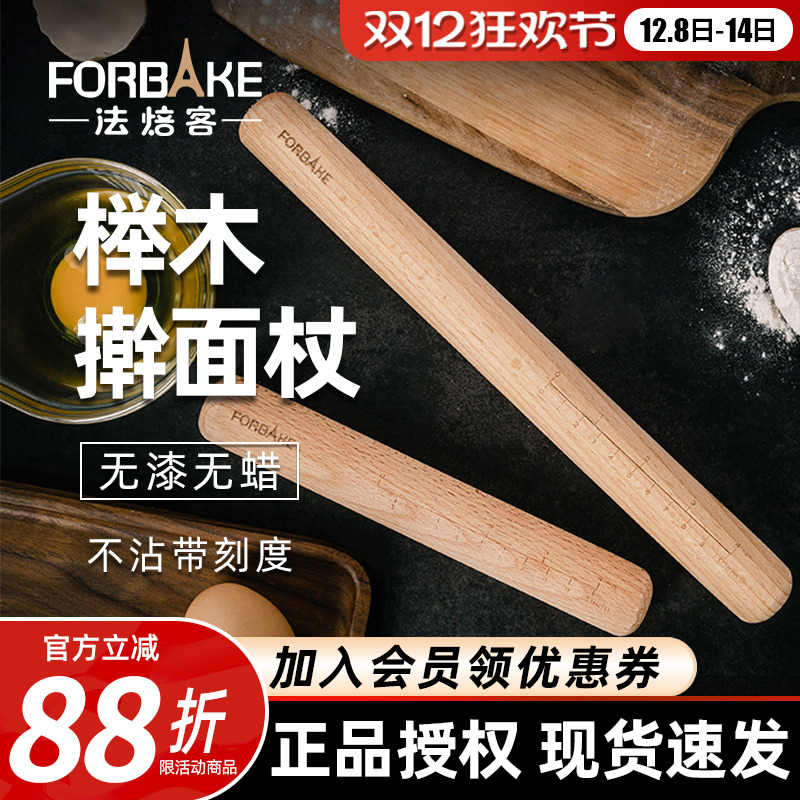 法焙客擀面杖 实木月饼饺子皮神器家用大号赶面棍棒烘焙工具滚轴