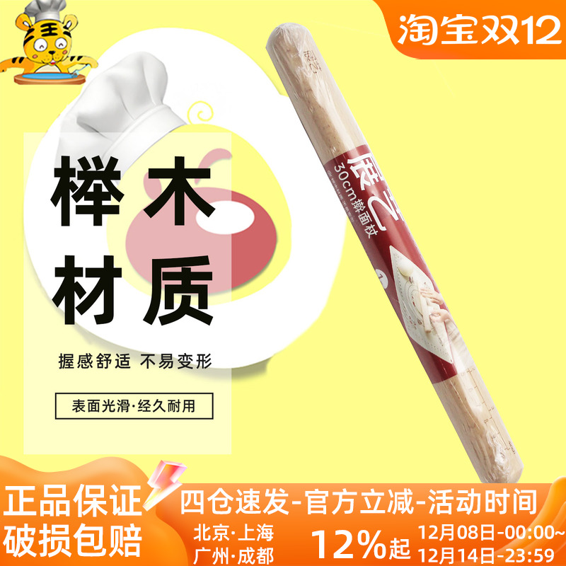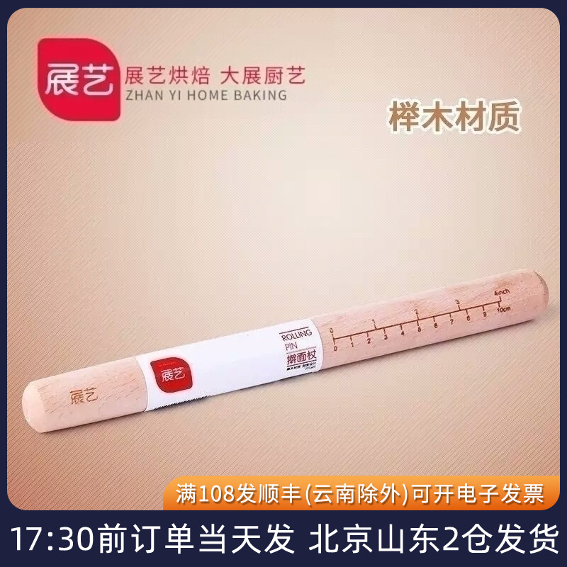 展艺木制擀面杖 实木压面棍木质饺子皮擀面棍大小号家用烘焙工具