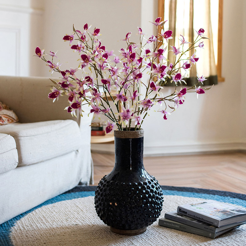 北欧石斛兰仿真花束蝴蝶兰万代兰插花艺茶几餐桌客厅落地花装饰品