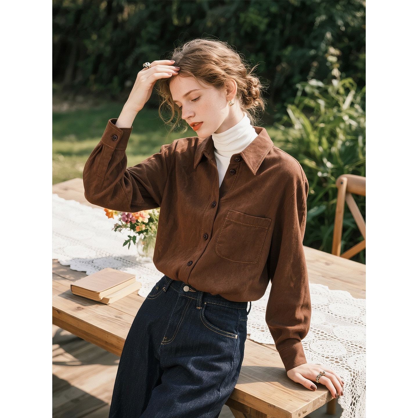 - 休闲牛仔衬衫女