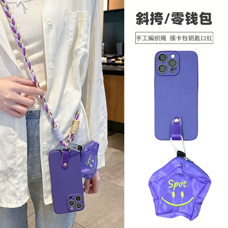 笑脸星星零钱包适用iphone16手机壳15promax斜挎苹果14/13promax编织挂绳12mini插卡包XS/XR软壳7p/8plus女6s