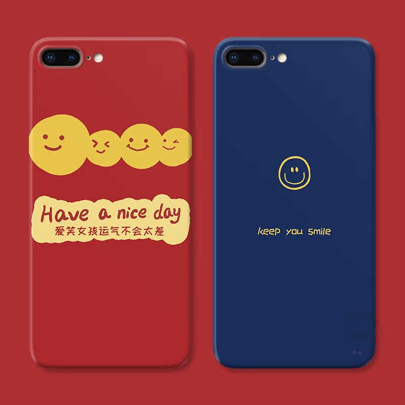 网红笑脸适用iPhone8plus苹果x手机壳6s简约7喜庆XR可爱xsmax龙年5se女款软1/2/3二三代