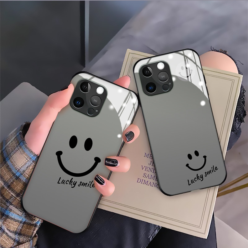 luck笑脸适用苹果13手机壳iphone14promax新款xr镜头x全包11保护套12pro金属漆6s玻璃mini男士xsmax/7/8plus
