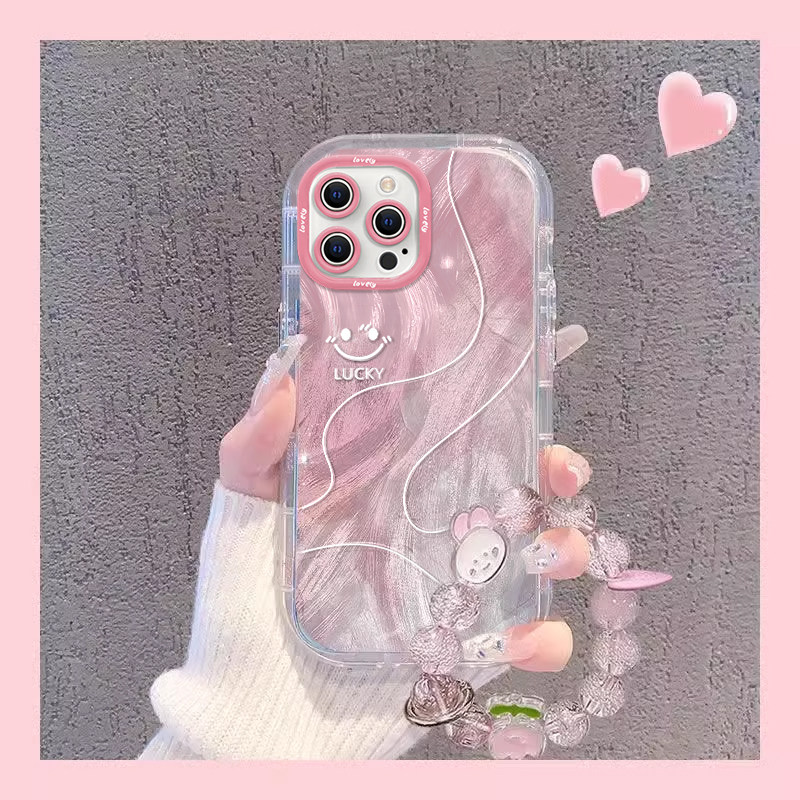 适用苹果15promax手机壳14pro新款13mini硅胶12清冷风11全包8羽纱笑脸7plus女款6s渐变粉高级感xr防摔xs手链