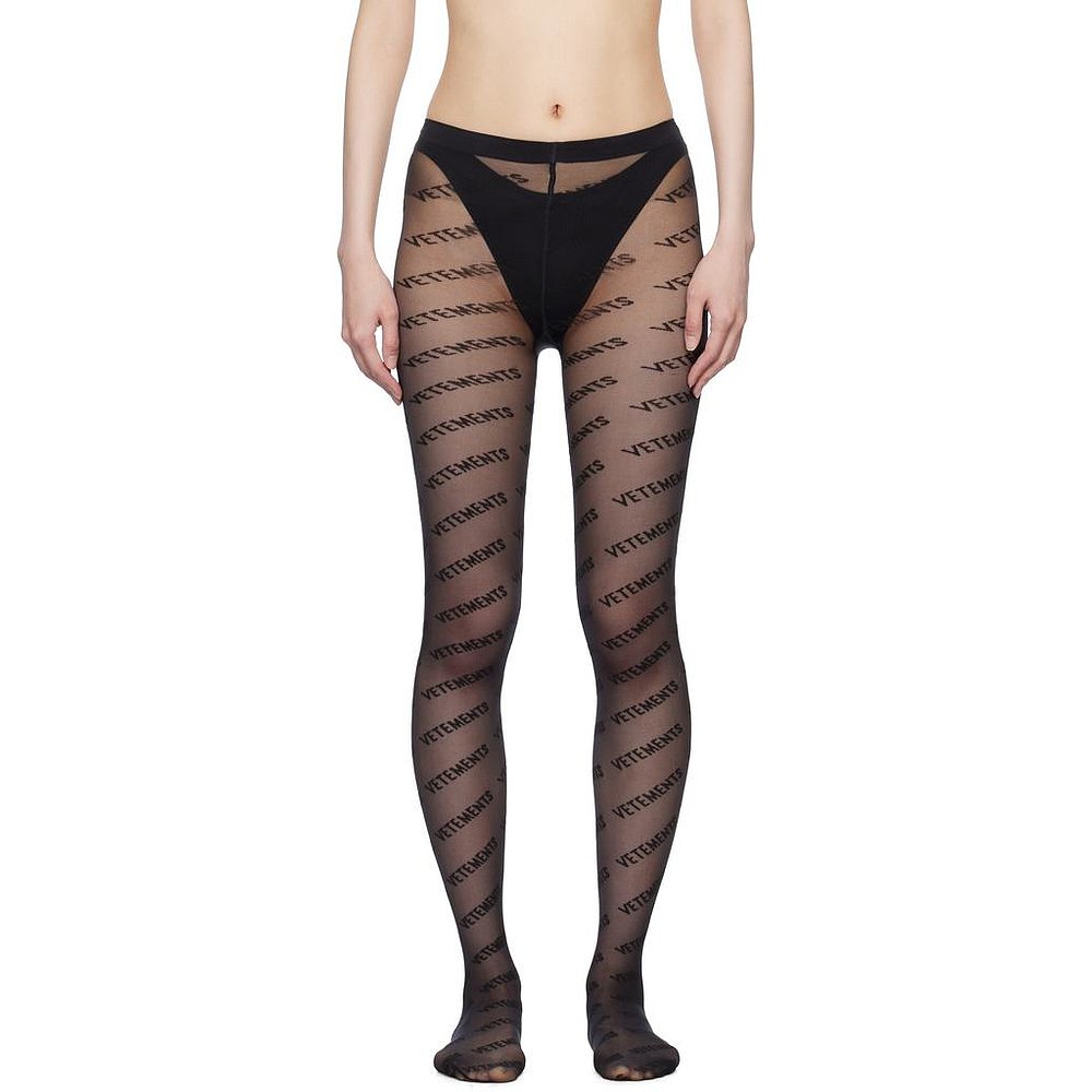 现货vetements纹身丝袜 wiwen同款vt薄透肉色字母连裤袜时髦百搭
