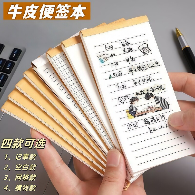 牛皮便签本可撕便签本学生便携清单计划本时间复古本子迷你便携随身口袋笔记本日程计划学生英语单词记事