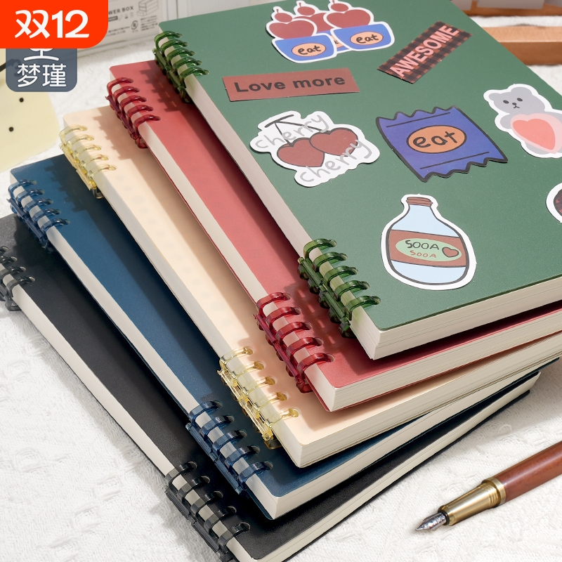 笔记本加厚本子学生涂鸦线圈日记本活页本新款手绘文具线圈本可平摊防水美式复古本子高颜值