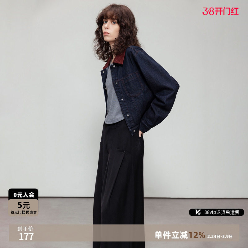 可路莎正品251115A 牛仔翻领短款牛仔外套女春秋百搭单排扣上衣