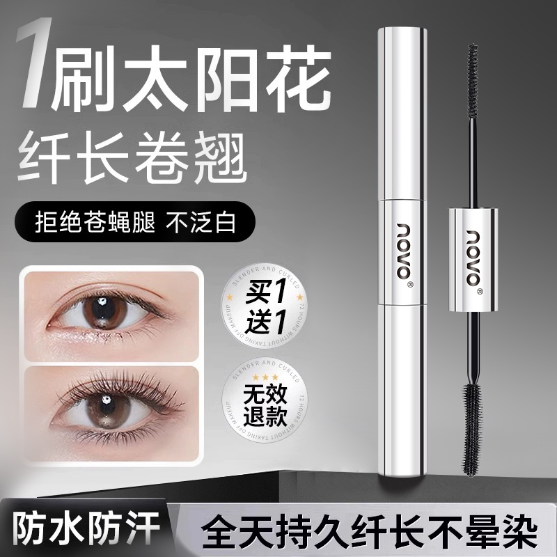 NOVO睫毛膏双头细刷头持久防水防汗不晕染纤维拉长眉毛打底定型液