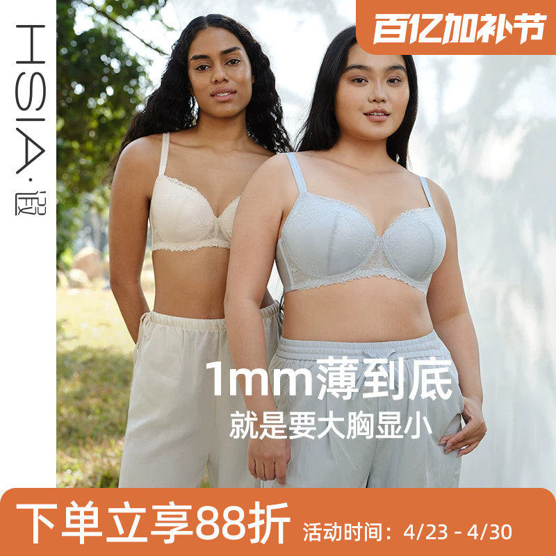 遐【小风荷】1mm超薄全罩杯大码文胸罩大胸显小微聚拢薄款内衣女