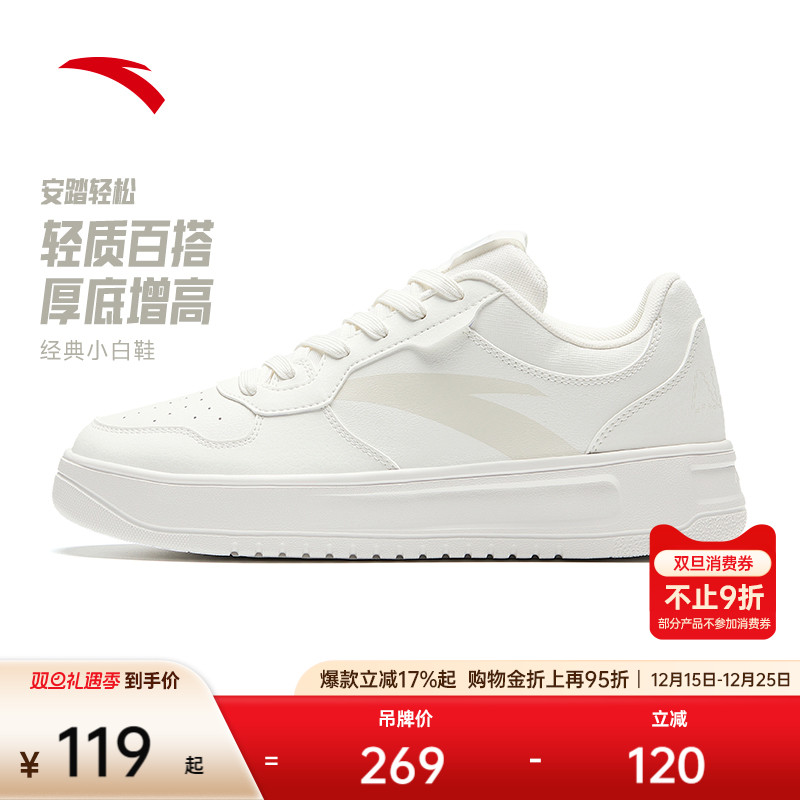 安踏男鞋板鞋子男冬季皮面舒适透气潮流轻质休闲鞋运动鞋小白鞋男