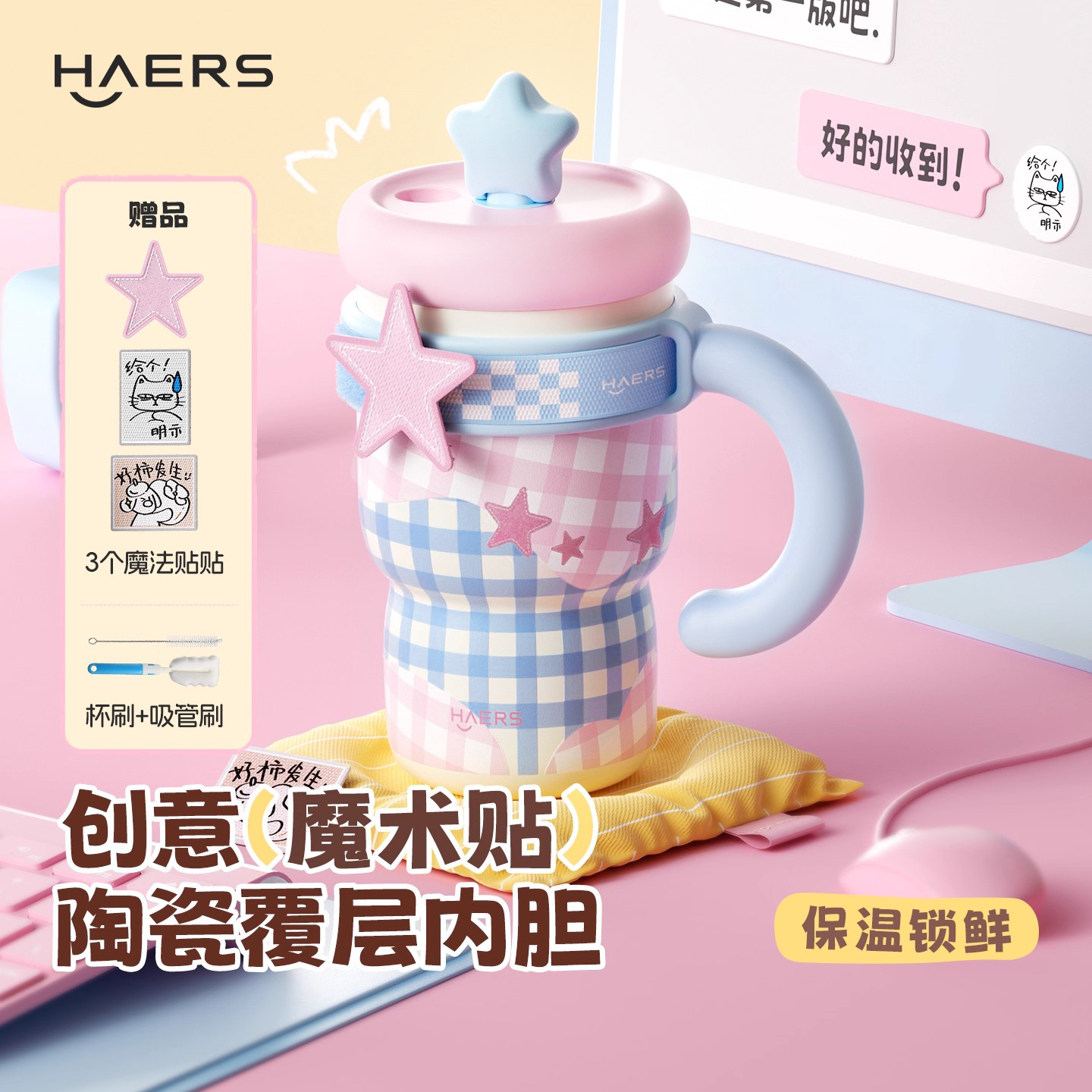 哈尔斯保温杯水杯女生高颜值大容量新款陶瓷内胆吸管杯杯子咖啡杯