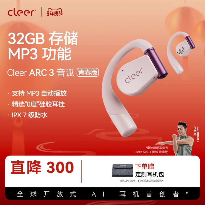 [自带MP3功能]cleerARC3青春版开放式AI耳机蓝牙2024新款32G内存