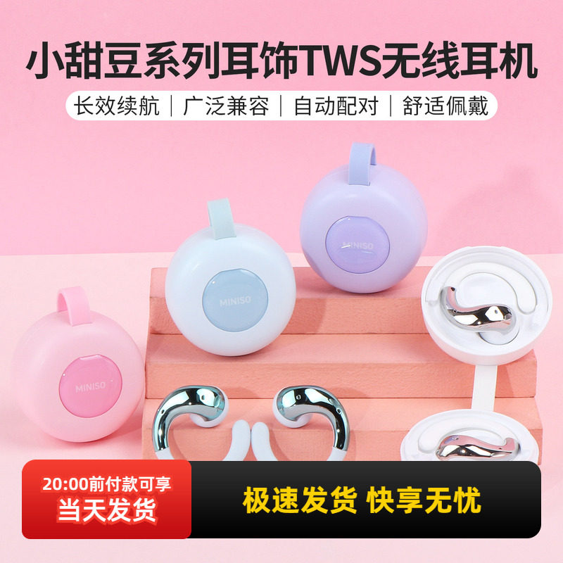 miniso名创优品小甜豆系列耳饰TWS无线耳机蓝牙耳挂式高音质