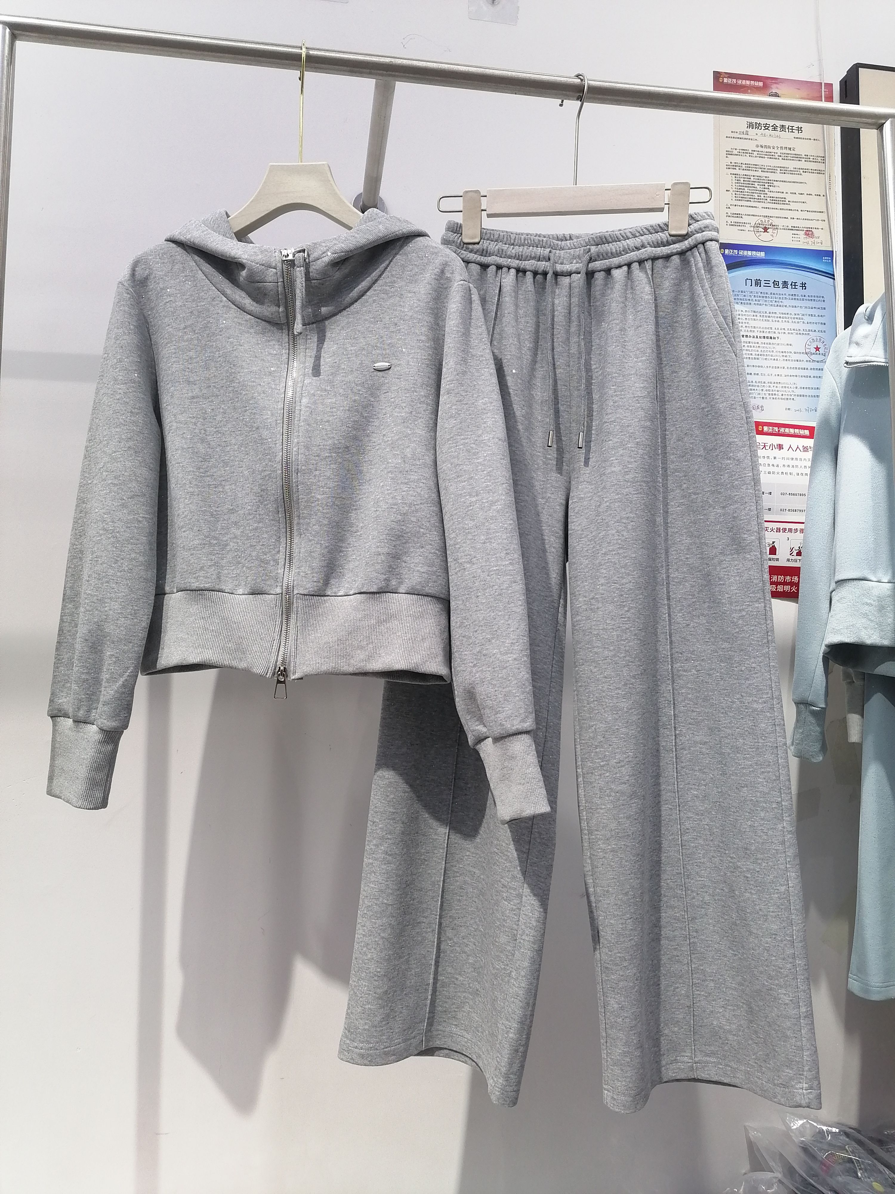 欧韩运动套装拉链连帽卫衣外套+阔腿裤两件套女2025春季时尚套装