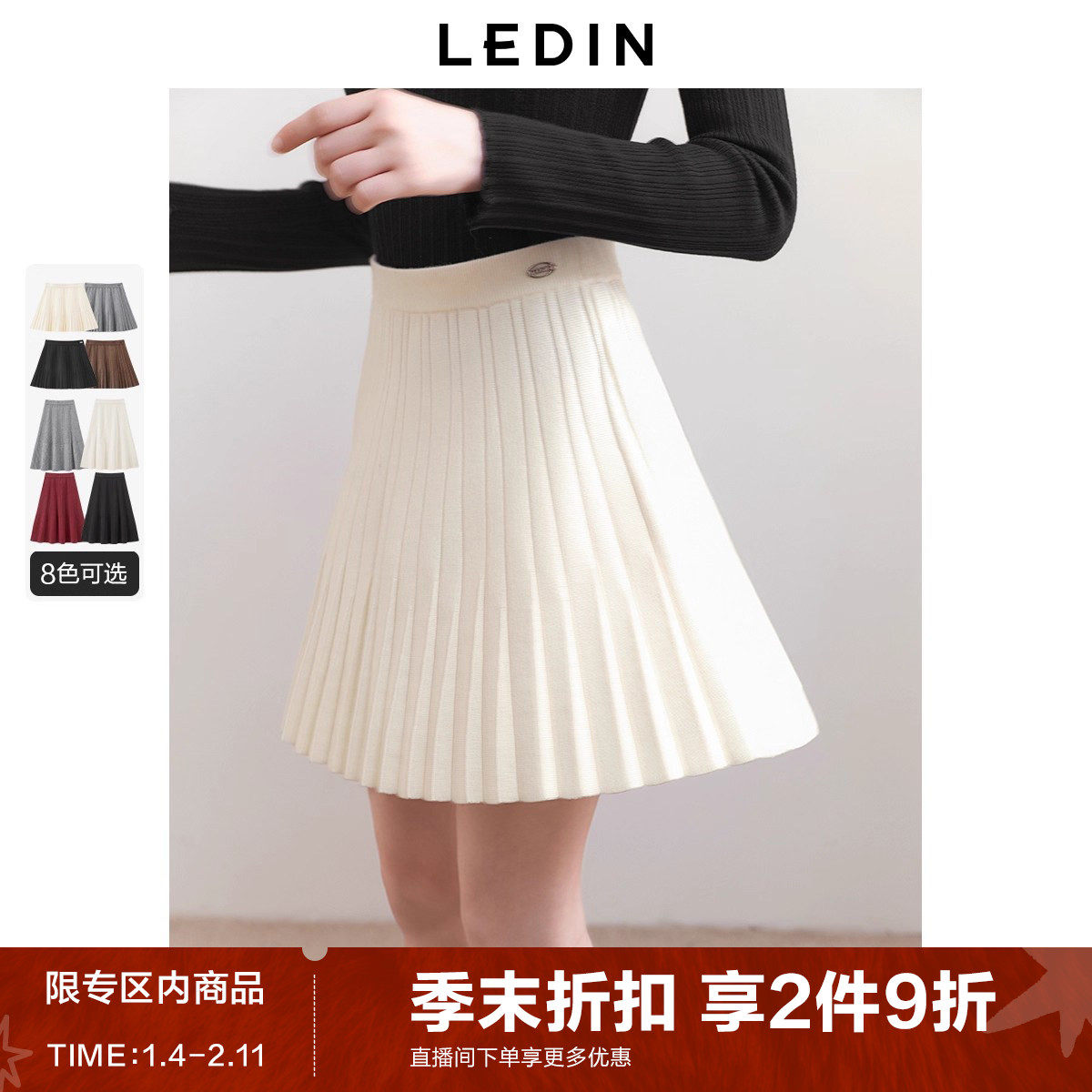 【商场同款】乐町花边装饰百褶裙冬学院风针织短裙C1GEE4254