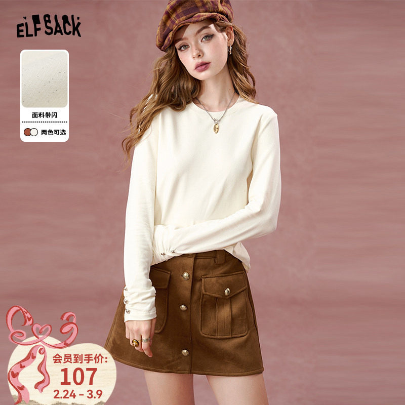 妖精的口袋亮闪白色长袖t恤女2026年早春新款百搭宽松打底衫上衣