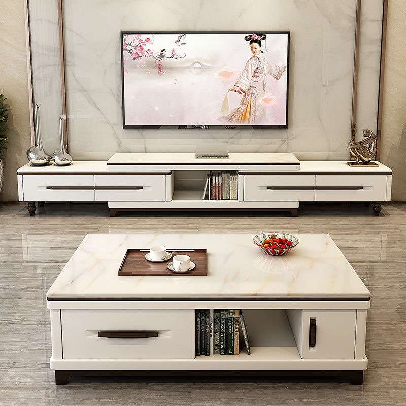 轻奢电视柜茶几组合客厅套装现代简约大理石家具小户型可伸缩玻璃