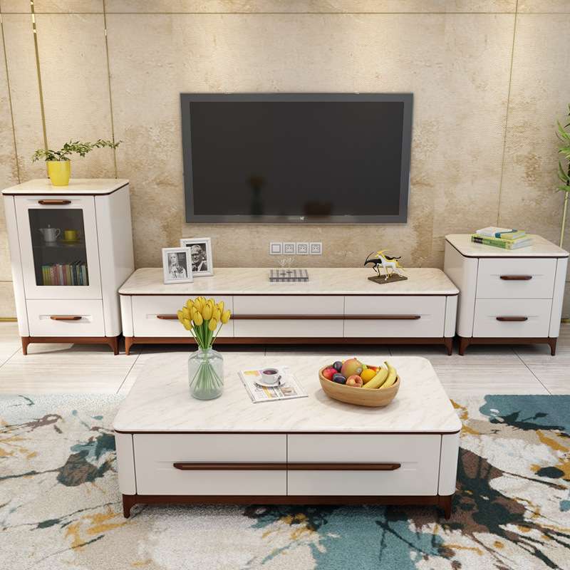 现代简约电视柜茶几组合套装家用客厅家具小户型电视柜子大理石面