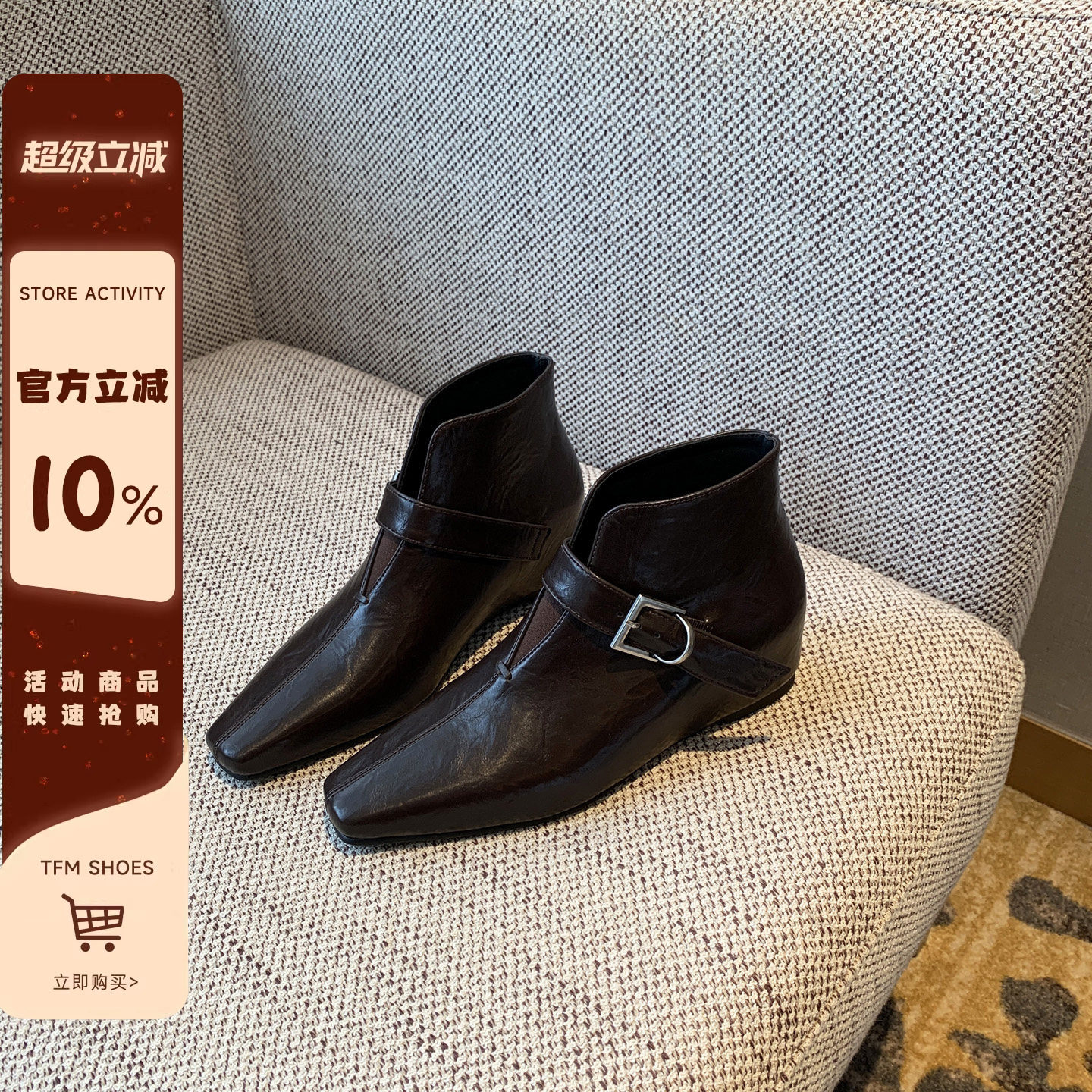【TFM】内增高5CM~靴子女2026早春新款欧美风方头短靴显瘦时装靴