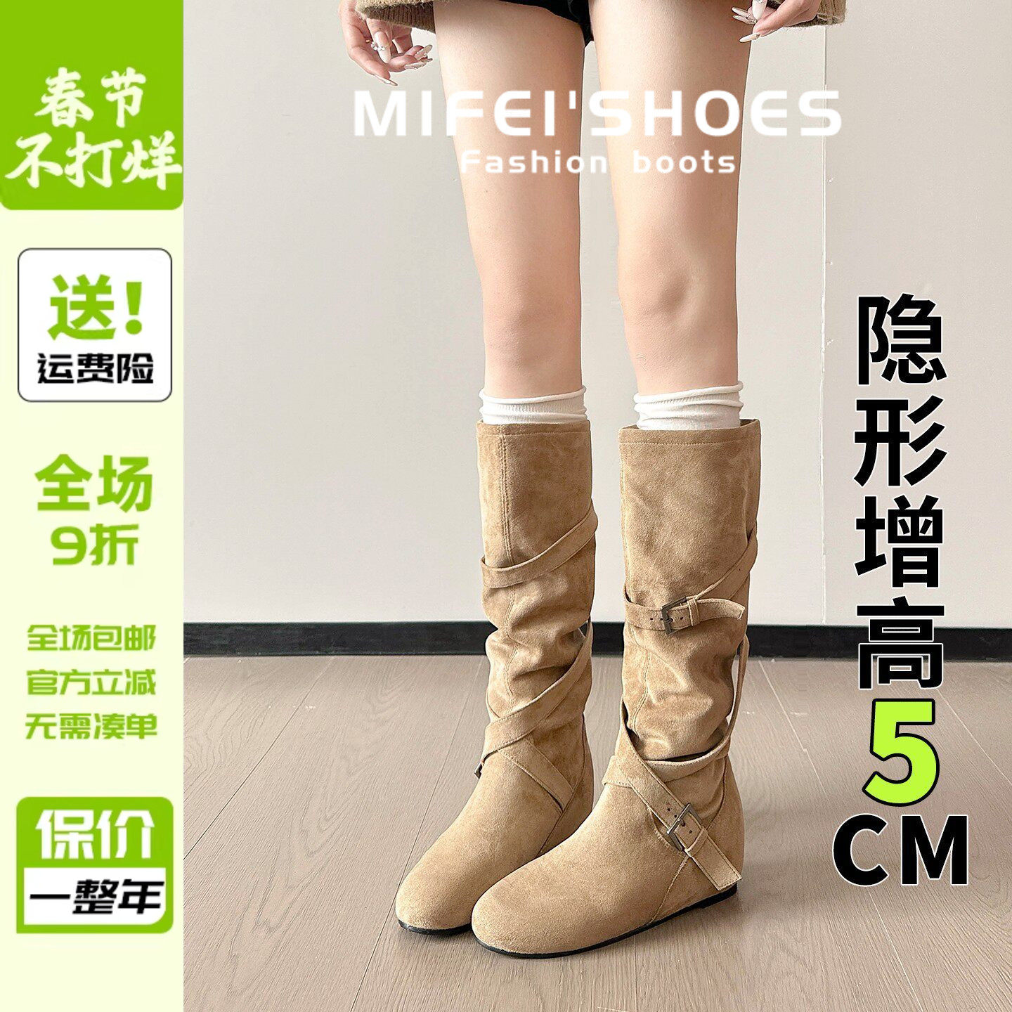 MIDING米町 穿搭博主人手一双~大筒围显瘦内增高骑士靴尖头长靴女
