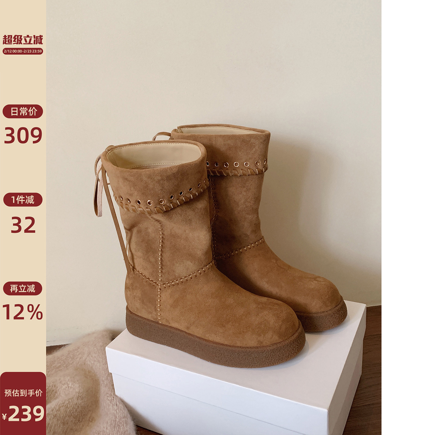 REEMOOR睿慕2025冬季新品休闲时装靴时尚流苏短靴雪地靴单靴女鞋
