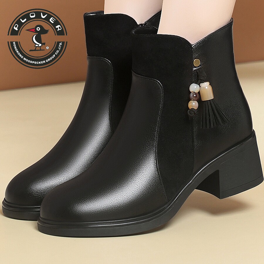 PLOVER复古风流苏短靴女冬季圆头低跟软底保暖妈妈靴防滑女短靴