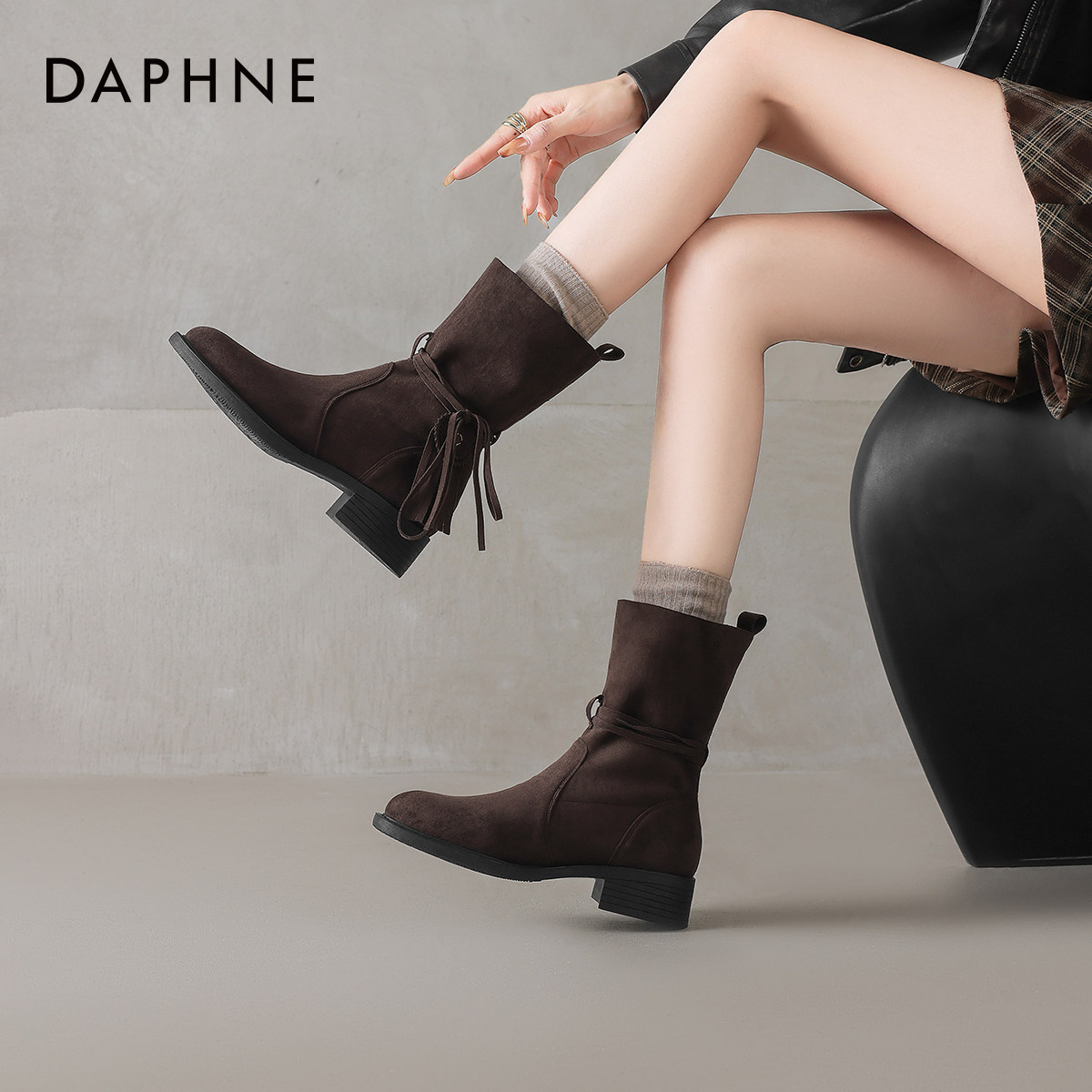 达芙妮靴子女冬季2026新款短靴美拉德加绒堆堆女靴马丁靴流苏中筒
