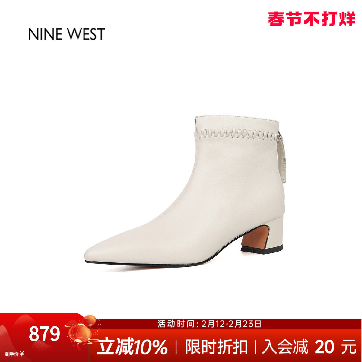 奥莱专供奥莱专供Nine West/玖熙尖头羊皮流苏短靴真皮靴子通勤靴