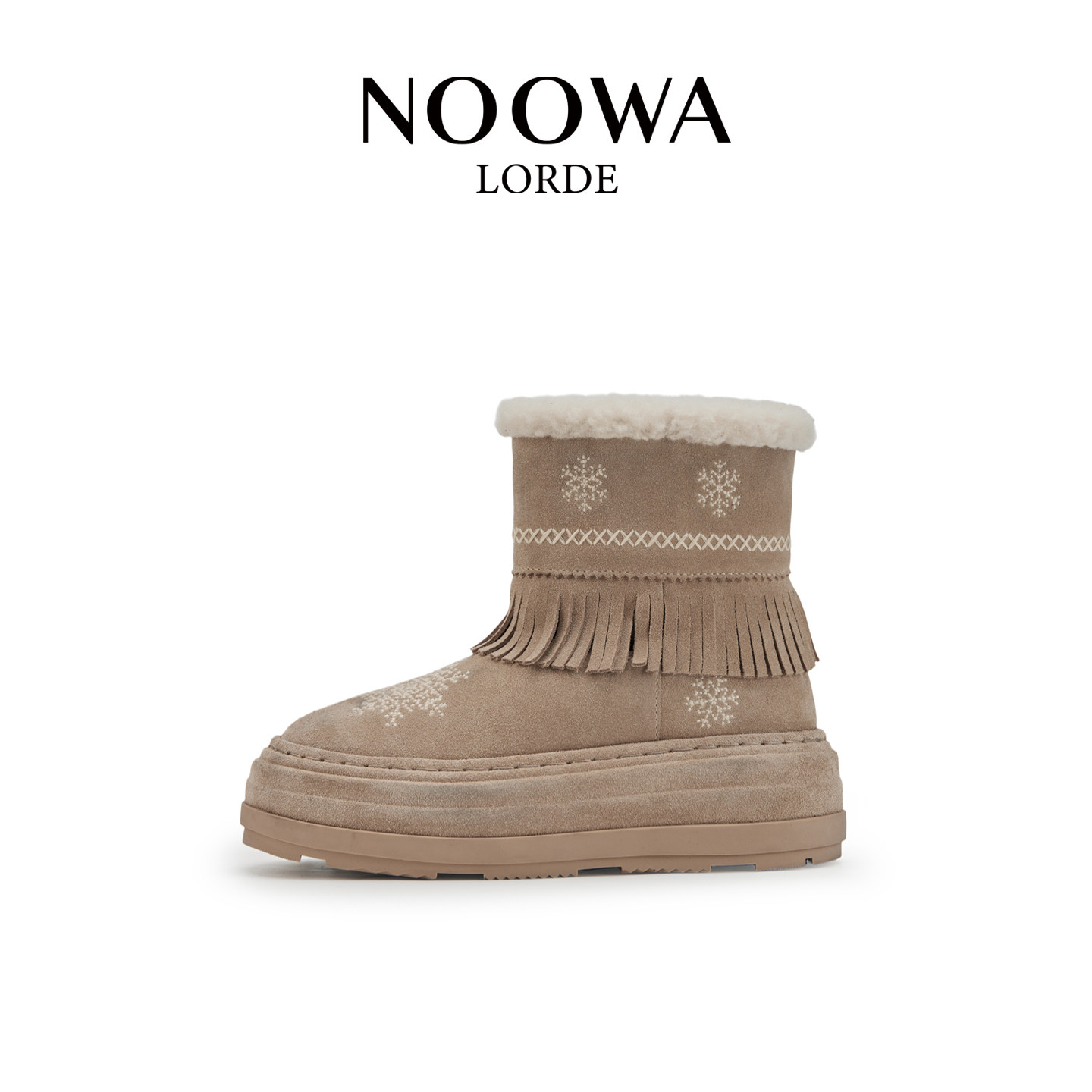 NOOWA商场同款厚底雪地靴女2025款冬季羊毛加厚保暖防滑流苏短靴
