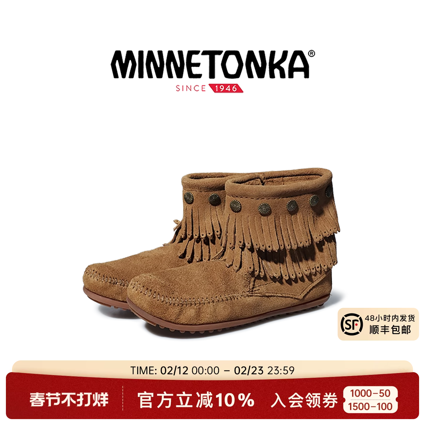 MINNETONKA/迷你唐卡流苏短靴女靴秋冬新款平底百搭流苏小短靴