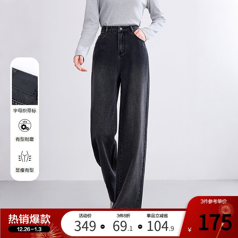播商场同款黑灰色牛仔裤女25春秋新款直筒宽松长裤BDS1KD1542