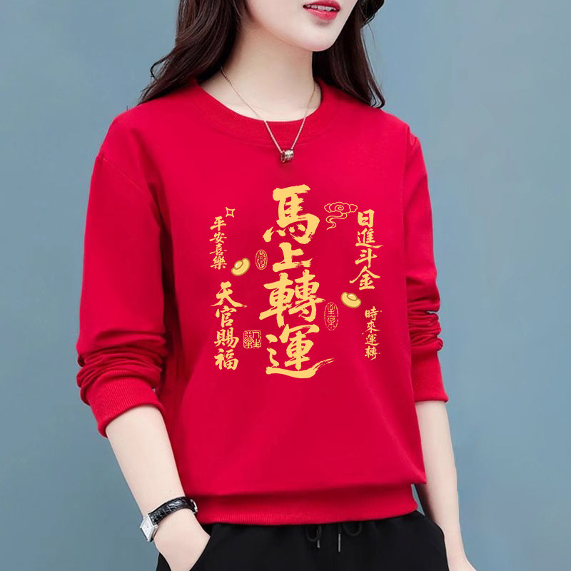 大码女装2026新年秋冬季卫衣宽松红色喜庆马年本命年上衣加厚T恤