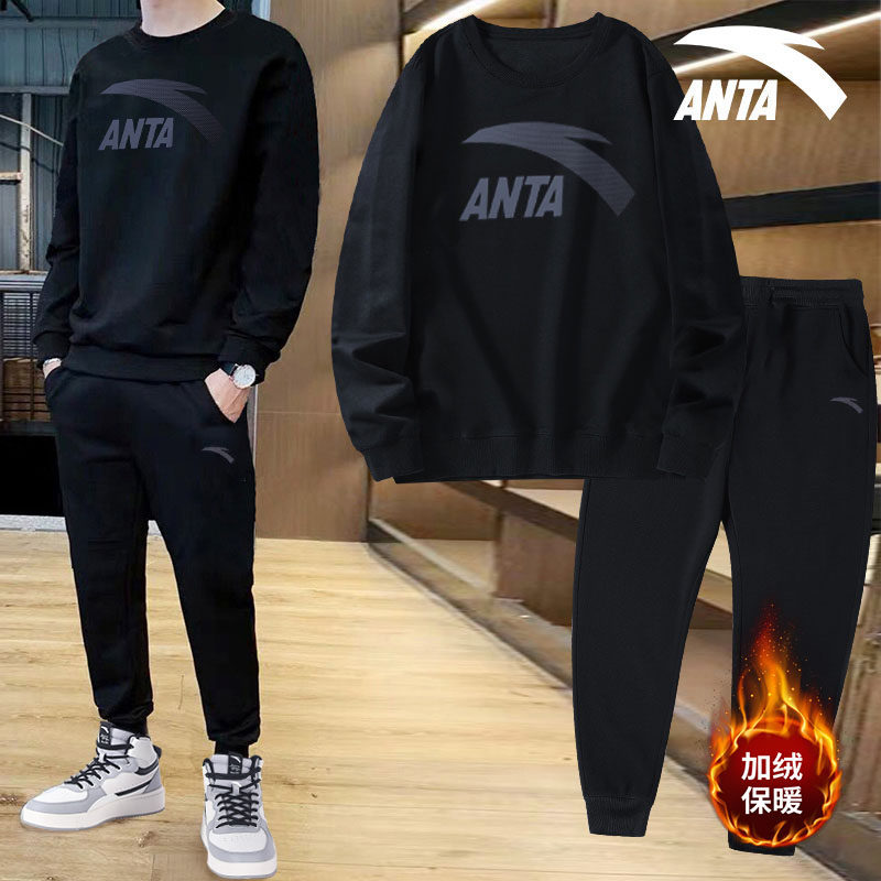 安踏加绒运动套装男秋冬季卫衣宽松大码套头衫户外健身休闲保暖衣