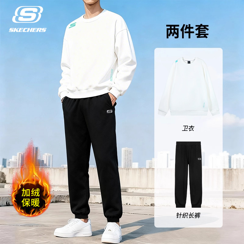 斯凯奇加绒运动套装男冬季卫衣宽松大码套头衫跑步健身休闲保暖衣