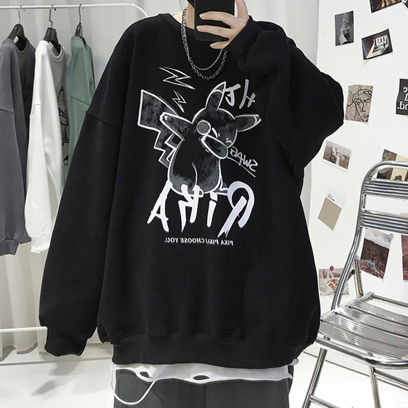 男生冬季卫衣宽松潮牌男常规春秋衫打底上衣服皮卡丘圆领大码薄款
