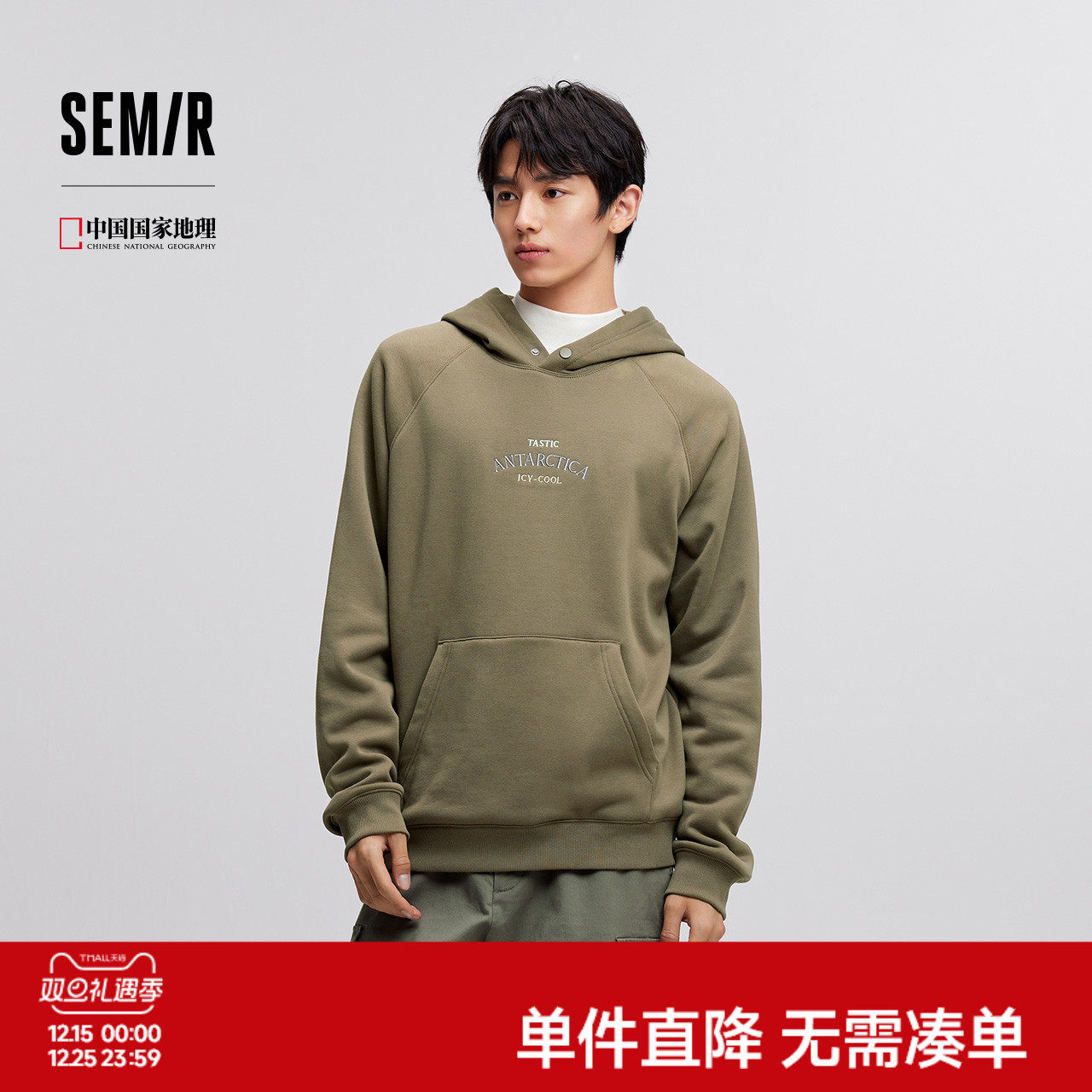 森马中国国家地理系列连帽卫衣男冬季加绒小宽松情侣上衣户外流行
