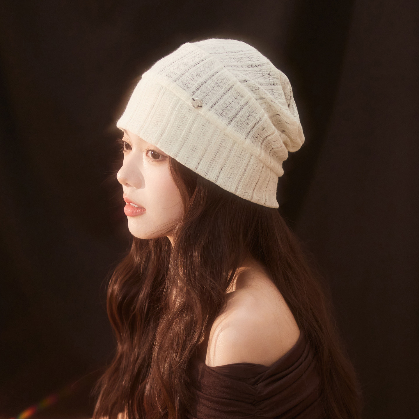 日系慵懒风堆堆帽女薄款透气百搭纯色冷帽氛围感简约镂空套头帽子