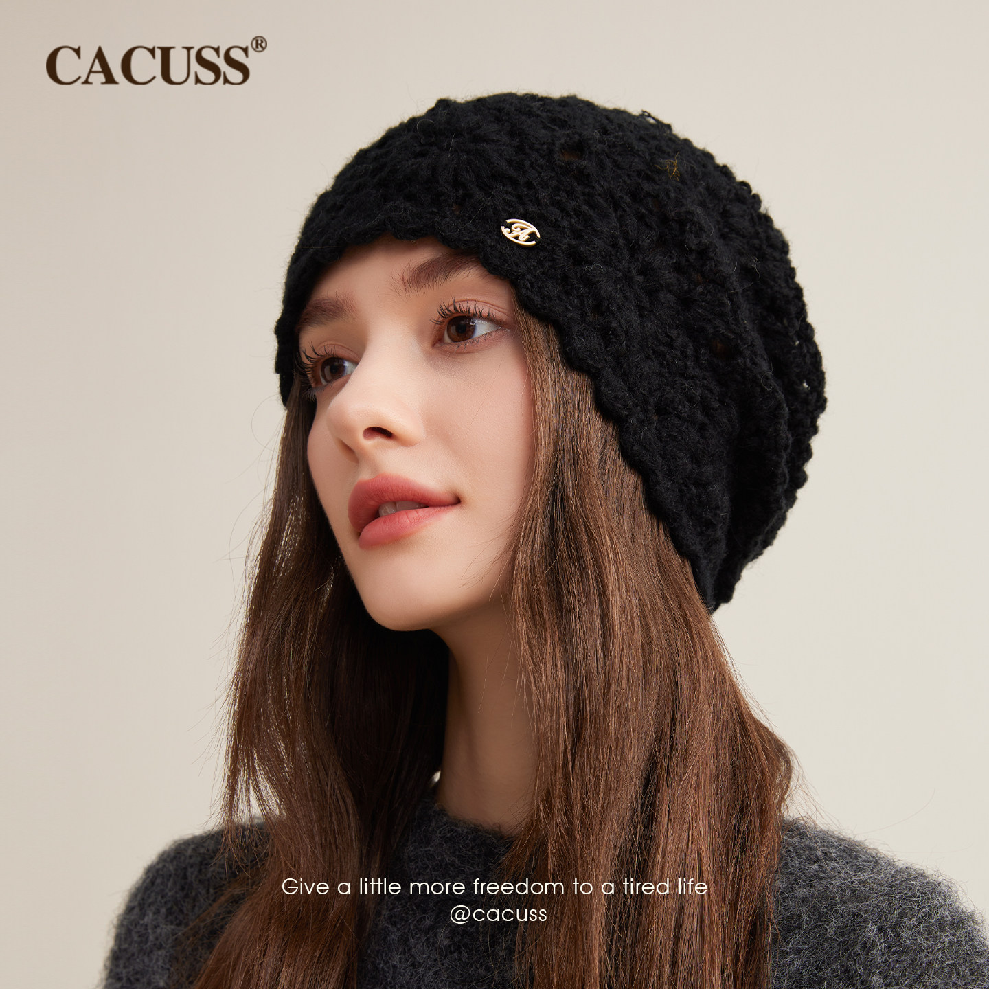 【所有女生直播间】CACUSS秋冬新款镂空套头帽时尚堆堆帽子百搭