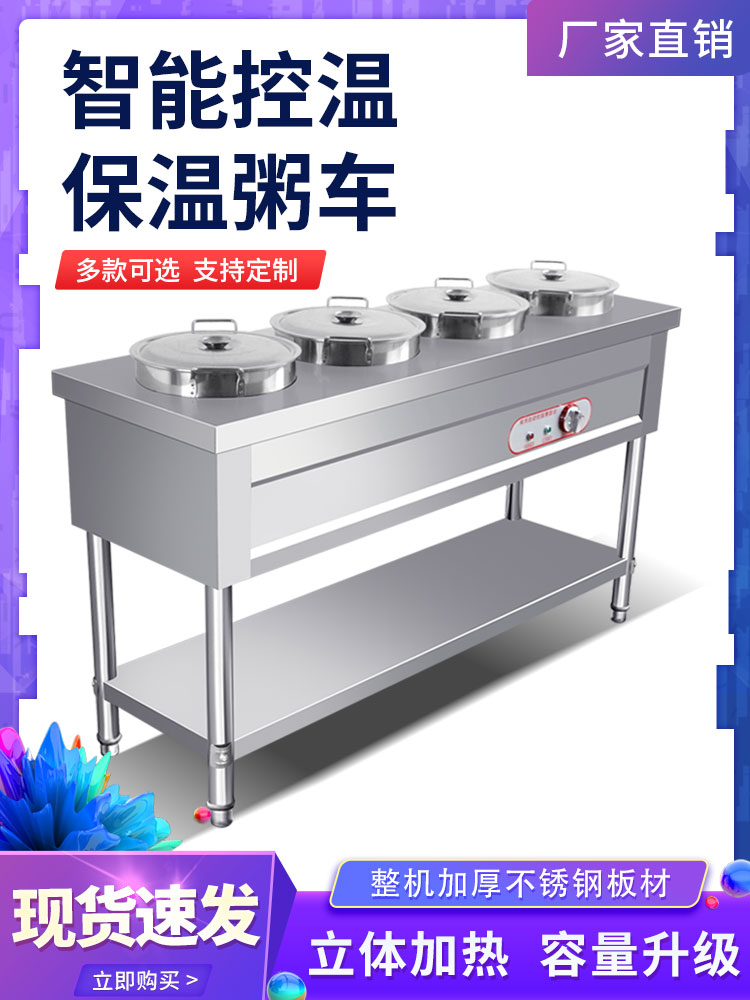 不锈钢商用保温粥车汤桶车保温台售饭台粥台粥锅暖汤炉煲粥快餐车