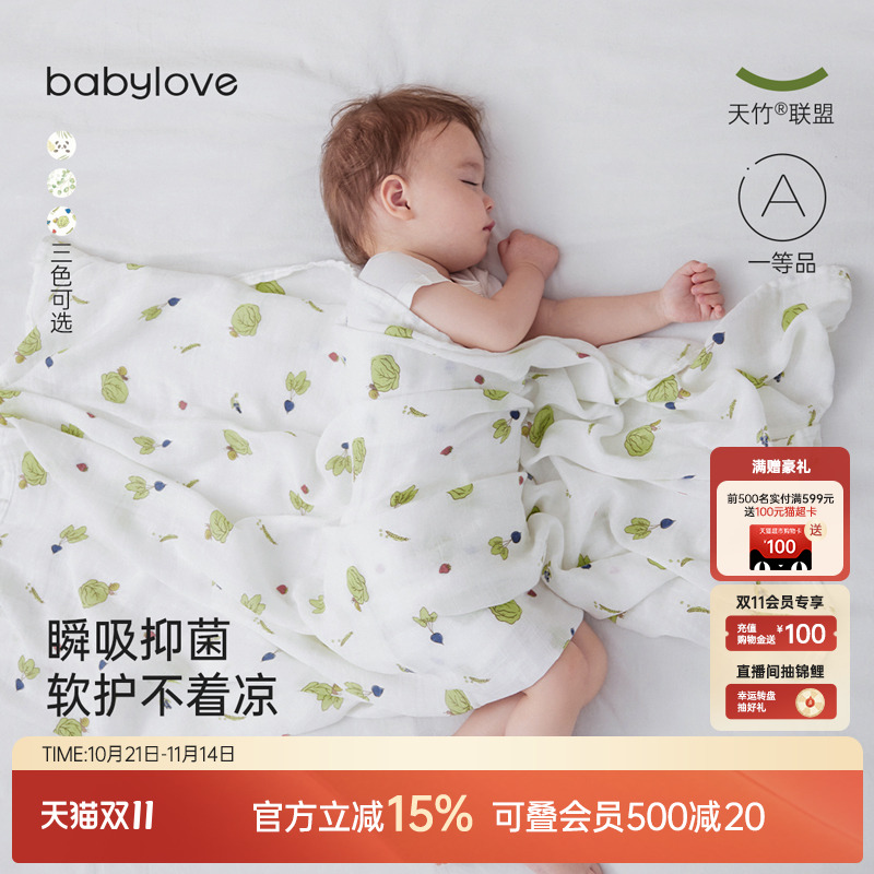 babylove婴儿包巾初生宝宝竹棉纱布浴巾夏季新生儿襁褓巾产房包单
