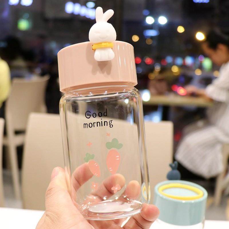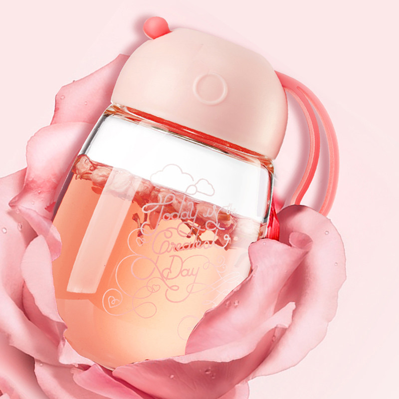 天喜玻璃杯水杯便携韩国女学生茶杯子创意透明带盖韩版可爱随手杯