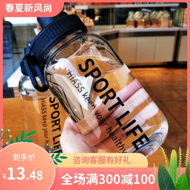 大容量水杯女学生1000ml便携创意韩国个性玻璃杯男女ins潮流杯子